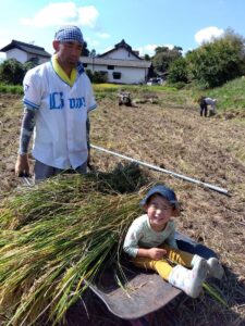 昨年から始めた米作りも、 児玉さんからお借りした田んぼで、 児玉さんに教えてもらいながら行っているそう。 作業中はお子様たちは児玉さん宅で遊ばせてもらい、 作業後 余裕のある時には、 ドイツ人の奥様手作りのドイツ風ケーキをいただくのも楽しみなんだとか。
