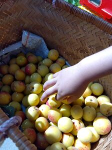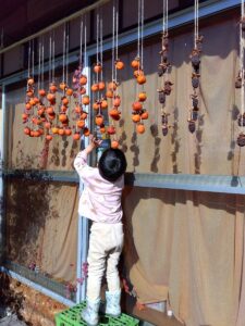 梅の収穫(左)。 かわいい干し柿泥棒を現行犯逮捕!(右)