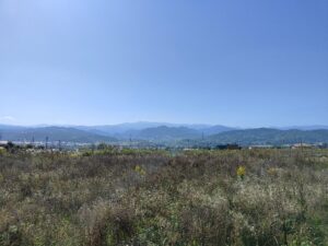 少し高台にあるひぐちさんのご自宅近くから望む景色。 東御の街が見下ろせる。